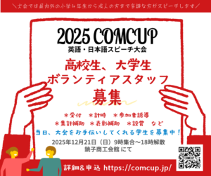 2025 COMCUP 英語・日本語スピーチ大会、会場部門へのエントリーを締め切りました。